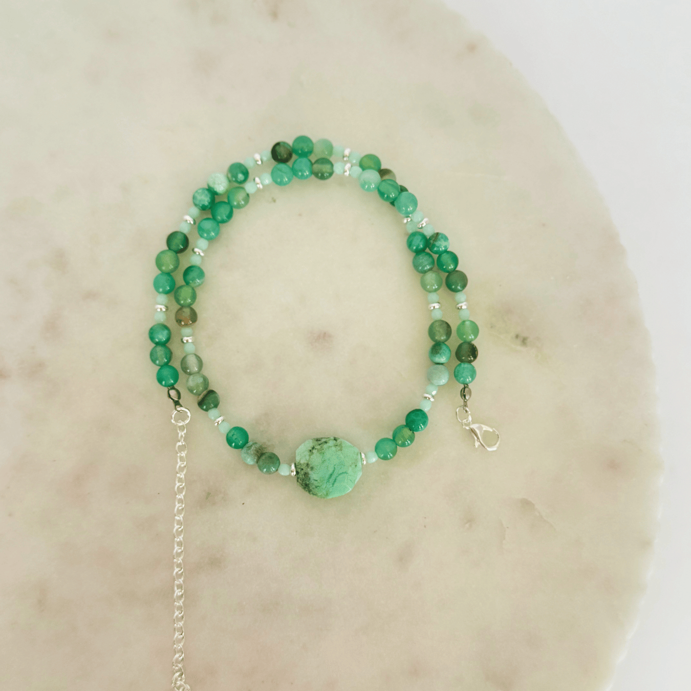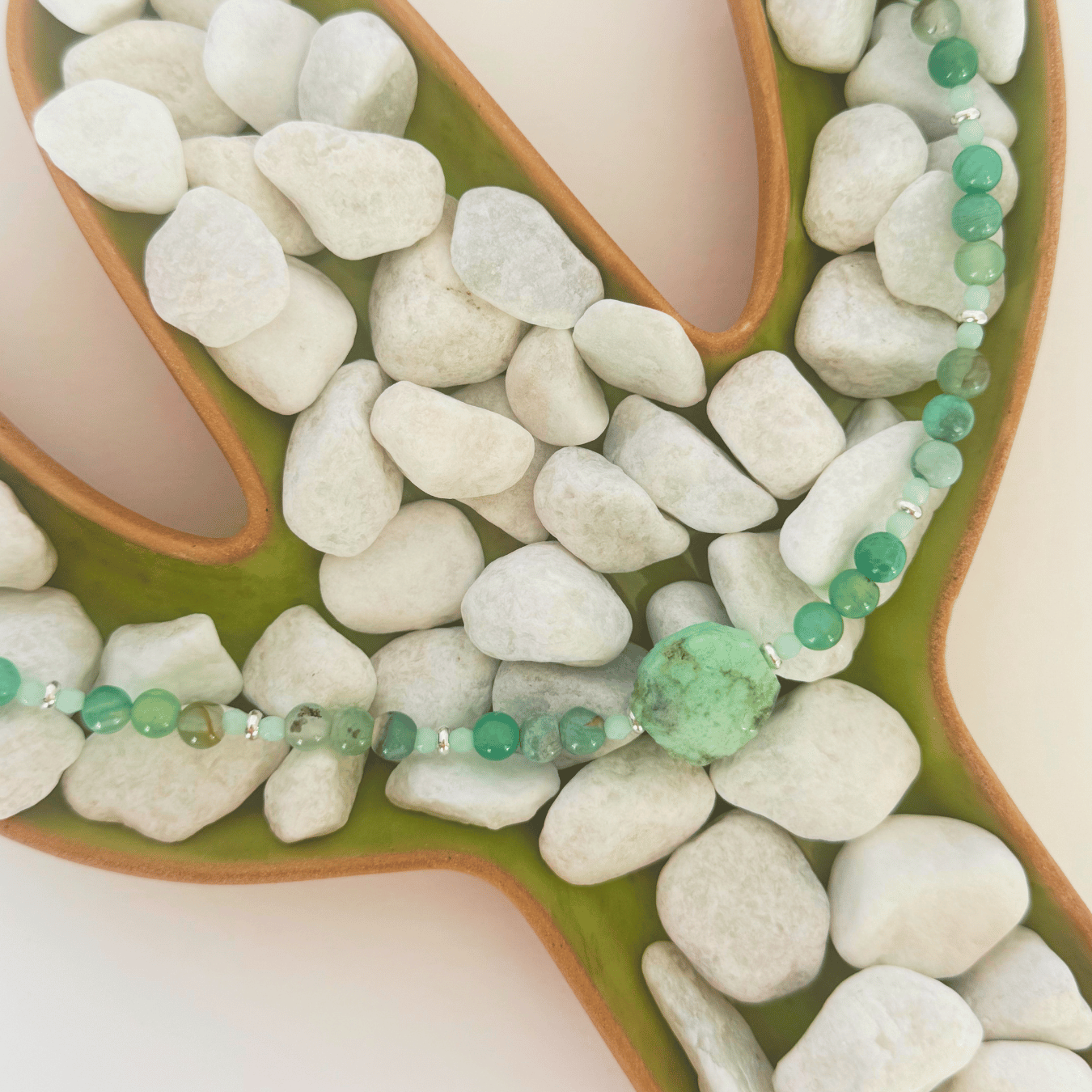 Crafted with green jade beads and a polished jade pendant, Desert Sage brings grounded, natural energy to your everyday style.